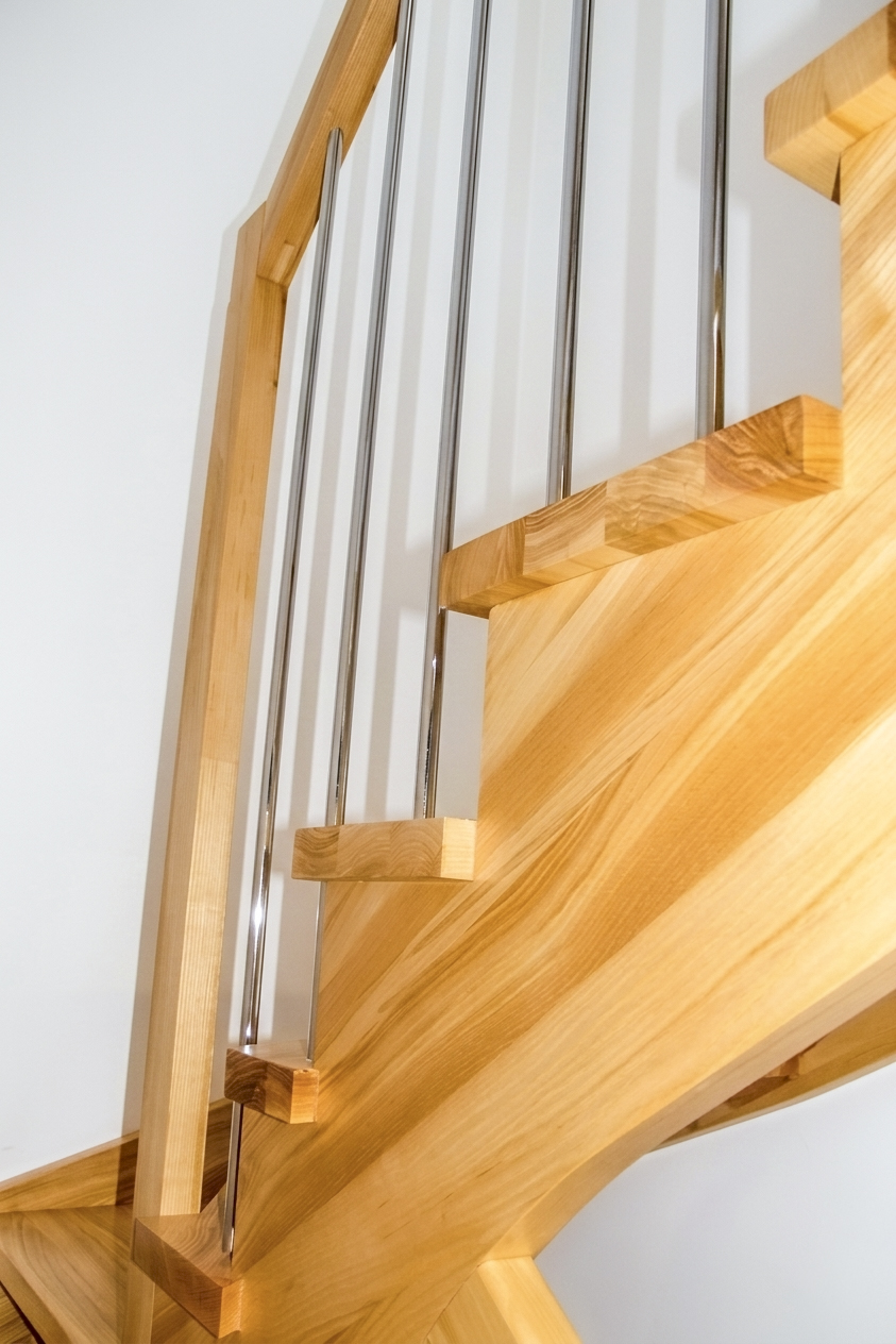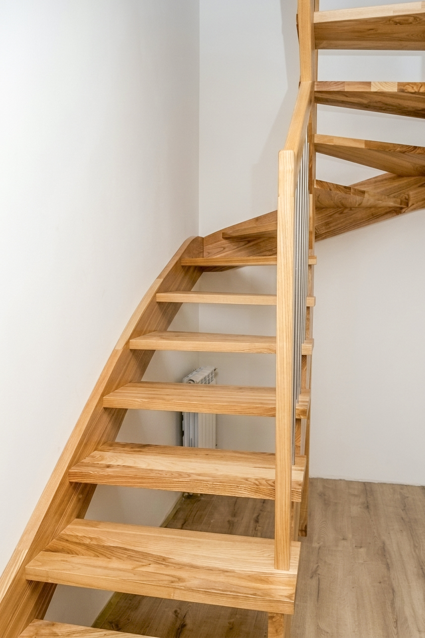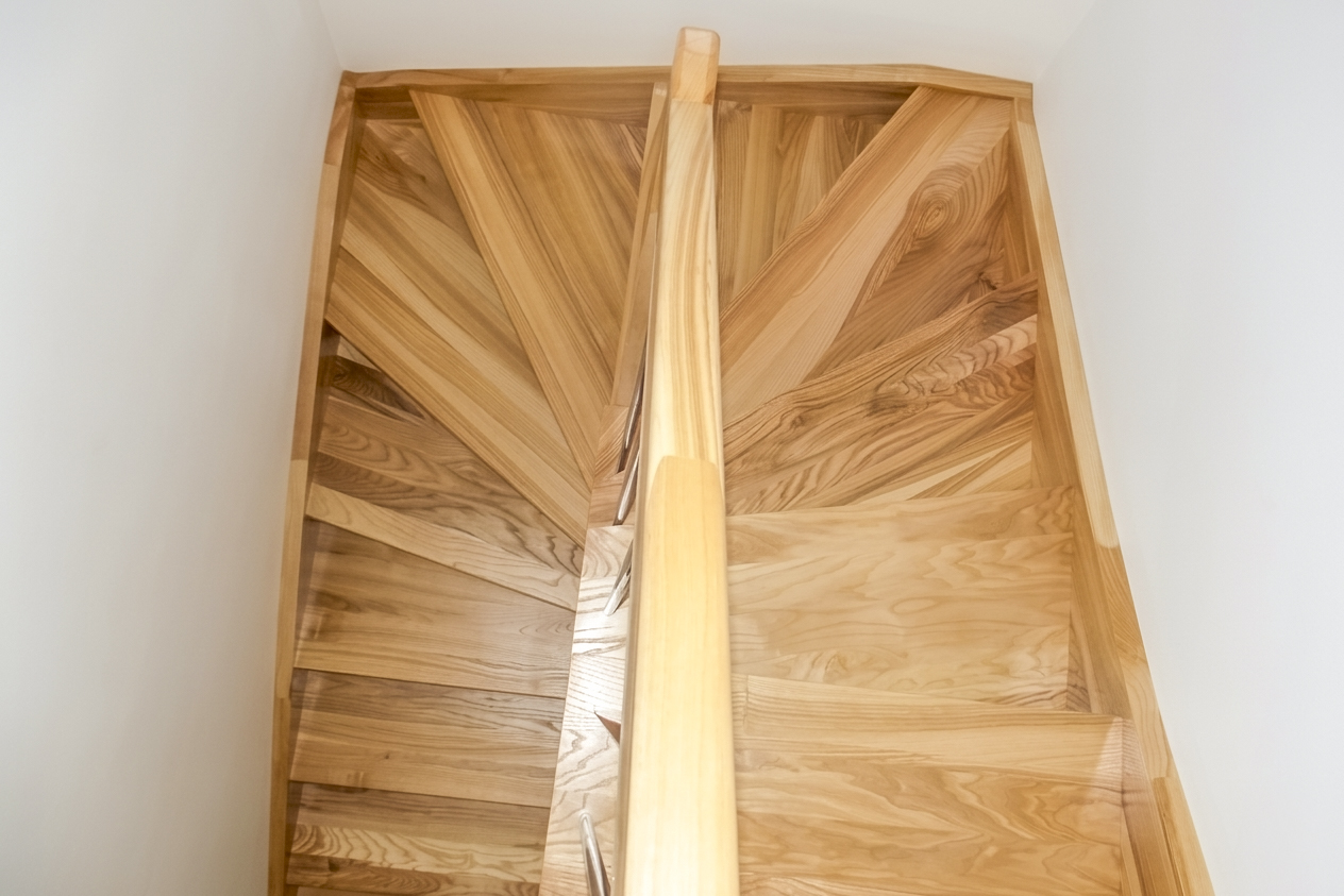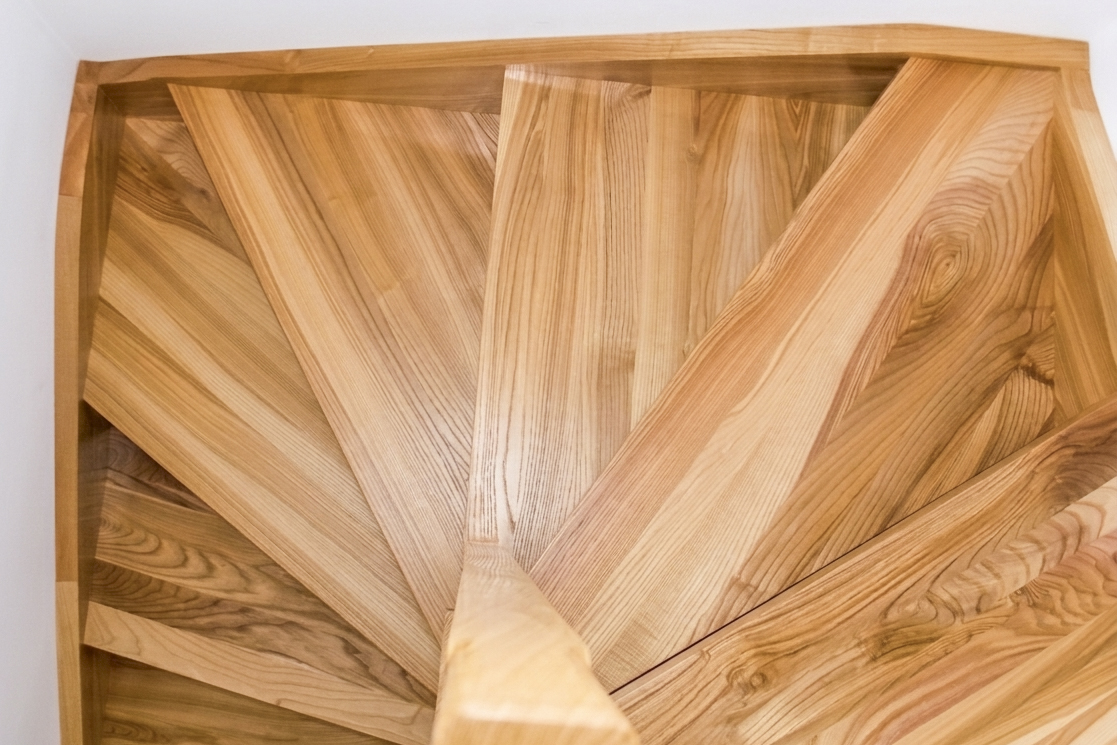 Dębowe schody kręte na słupie